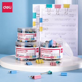 ¥ 24.90得力(deli)82只組合裝彩色長(zhǎng)尾夾/燕尾夾/票夾 中號(hào)+小號(hào)(25mm*12只+19mm*25只+15mm*45只)